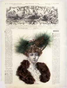 These beautiful newspaper ladies only needs a little bit of imagination, thread, ribbons, feathers etc. You can frame it as is, use it as part of a quilt ... the ideas are endless